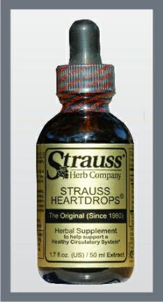 | STRAUSS HEART DROPS (BACK BY POPULAR DEMAND) According to the American Heart Association, Cardio Vascular Disease is the #1 health risk in the United States. Heart Drops is 100% Natural. Heart Drops is a special blend of herbs and spices that promote support for the cardiovascular and circulatory system. This is used by Physicians in several countries as a support for cardiovascular health. Dr. Maclean recommends use with Unique E and CoQ10. MORE INFORMATION |