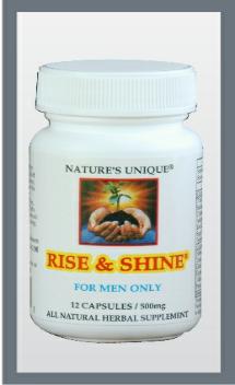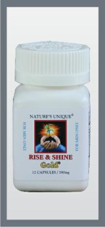| RISE & SHINE GOLD By Nature's Unique An all natural, Chinese herbal formula. Different herbs are used in this formula than those used in the original Rise & Shine. If, by chance, one of these formulas does not work for you, then the other one should. Men respond to different formulas. The advantage of the GOLD formula is that only one capsule is taken at a time, therefore take half as much and it lasts twice as long for the same price. *If you have cardiovascular disease or high blood pressure, Rise & Shine Gold should only be taken after consulting your physician. MORE INFORMATION |