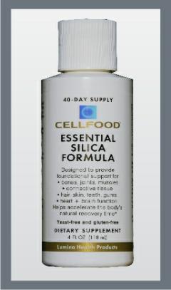 | SILICA WITH CELLFOOD Essential Silica Formula- In the human body, silica is essential for the fundamental support of bone formation, joints, muscles, ligaments and connective tissue. Healthy hair, skin, nail, teeth, gums, brain function and flexible arteries would be impossible without silica. Silica is essential for lung tissue function, elasticity, mucus flow, coughing, and regeneration of mucus membranes. Silica is critical to our wellbeing, but it is difficult to assimilate from a normal diet. Silica supplementation can increase collagen I, in growing bones, by 100%. In addition, as our bodies age we use increased levels of silica but are not able to replenish it as quickly or as easily as when young. Silica becomes increasingly more critical as we get older and may help in supporting longevity and eliminating the wrinkling of the skin. Supplementing our silica intake on a regular basis may be extremely beneficial. This is taken by the drop. MORE INFORMATION |